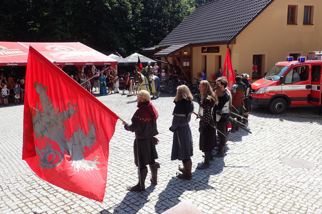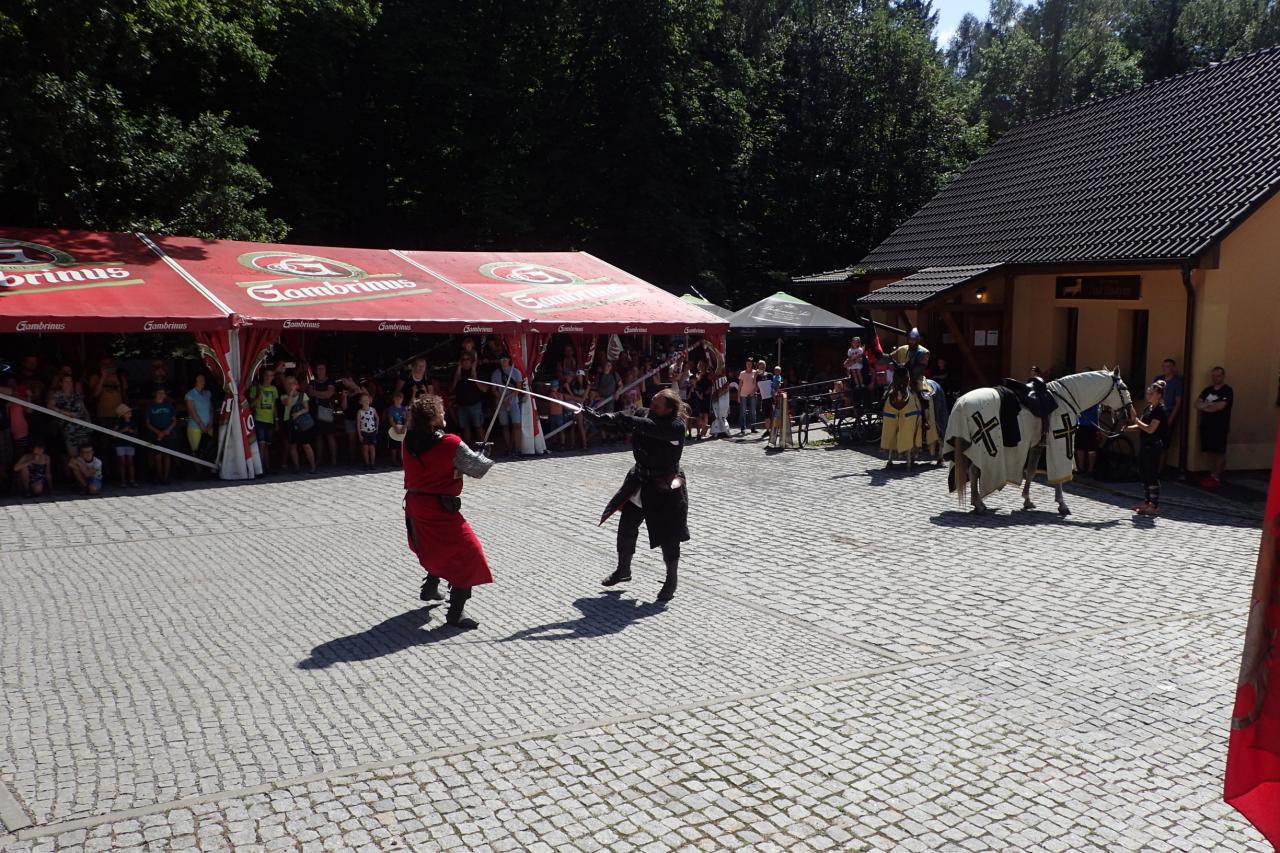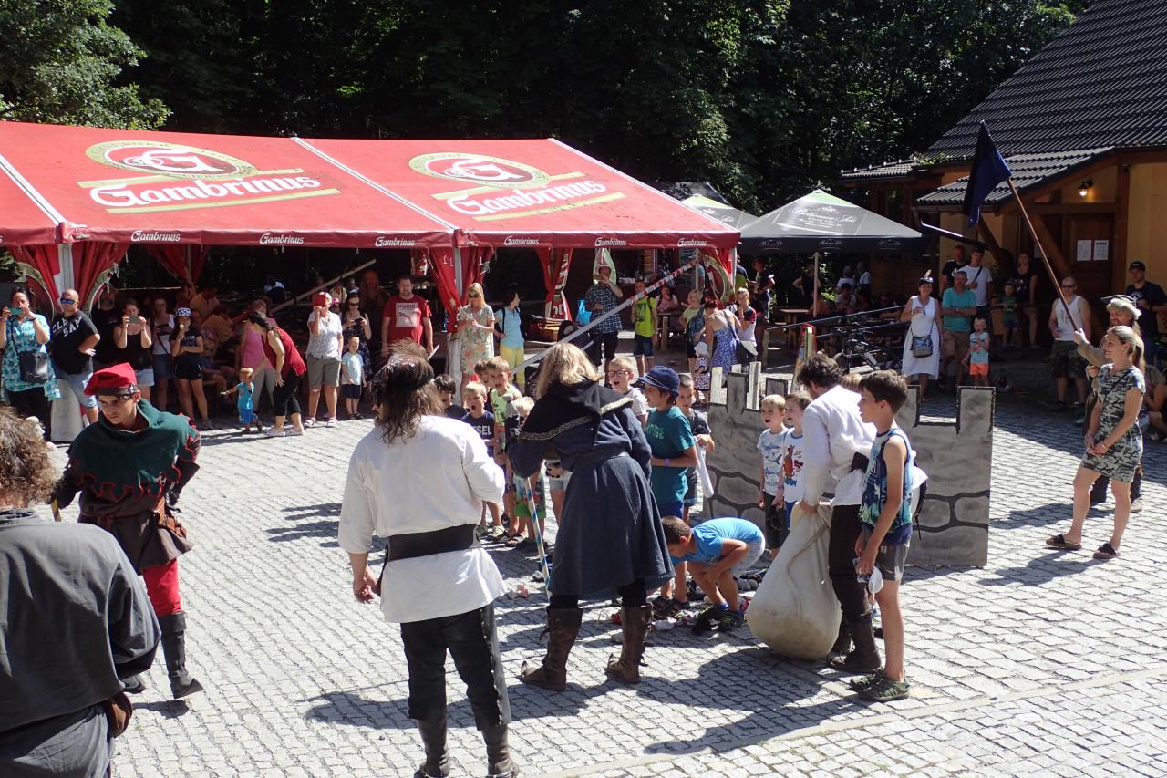 Úderem jedné hodiny odpoledne se ozval výstřel z děla, který pomyslně otevřel bránu času do středověku. Na své si přišli příznivci šermířských vystoupení, atmosféru středověku navodila svojí hudbou dobová kapela, v doprovodném programu si návštěvníci mohli zblízka prohlédnout středověké zbraně, vyzkoušet středověkou zbroj a zasoutěžit si v hodu sekyrami, v boji na kladině či ve střelbě na rytíře. Lákavou a nezapomenutelnou středověkou atrakcí bylo ponožkové dobývání hradu, kterého se mohly děti se svými rodiči na živo zúčastnit.